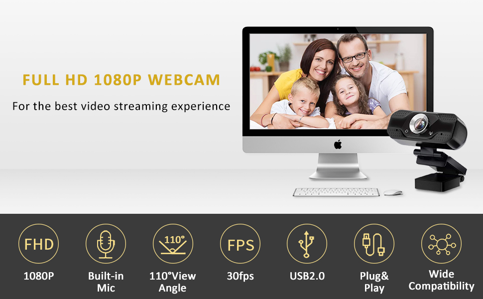 Amazon Com Chwares Webcam With Microphone 1080p Hd Webcam Desktop Or Laptop Streaming Webcam For Computer Widescreen Video Calling And Recording Usb Web Camera Built In Mic Flexible Rotatable Clip And Tripod